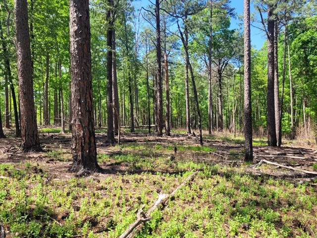 Pictured Above: Longleaf pine forests are characterized by widely spaced longleaf pines towering over a ground layer dominated by grasses and herbaceous plants.